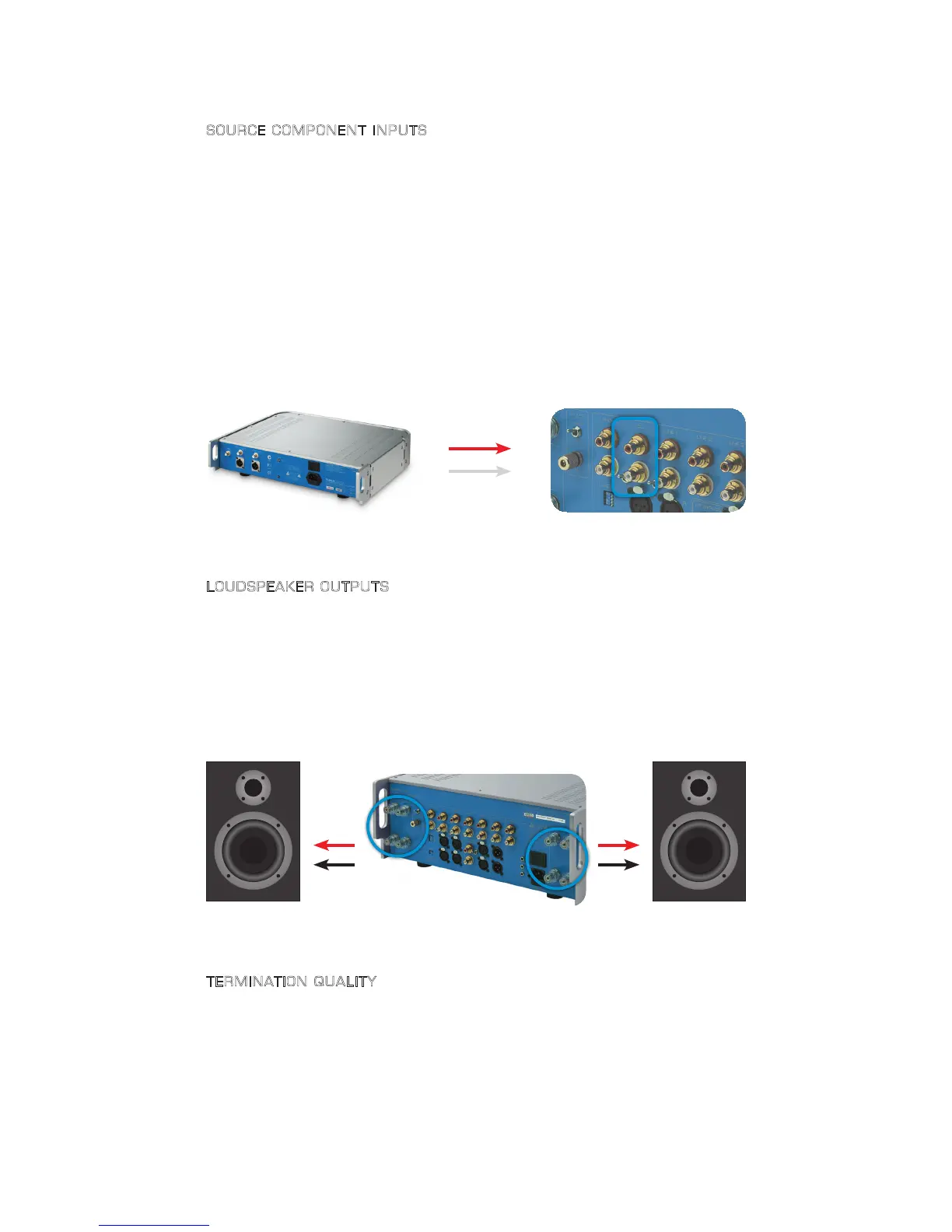 listening position) to the left output terminals, ensuring that the red positive (+) terminal