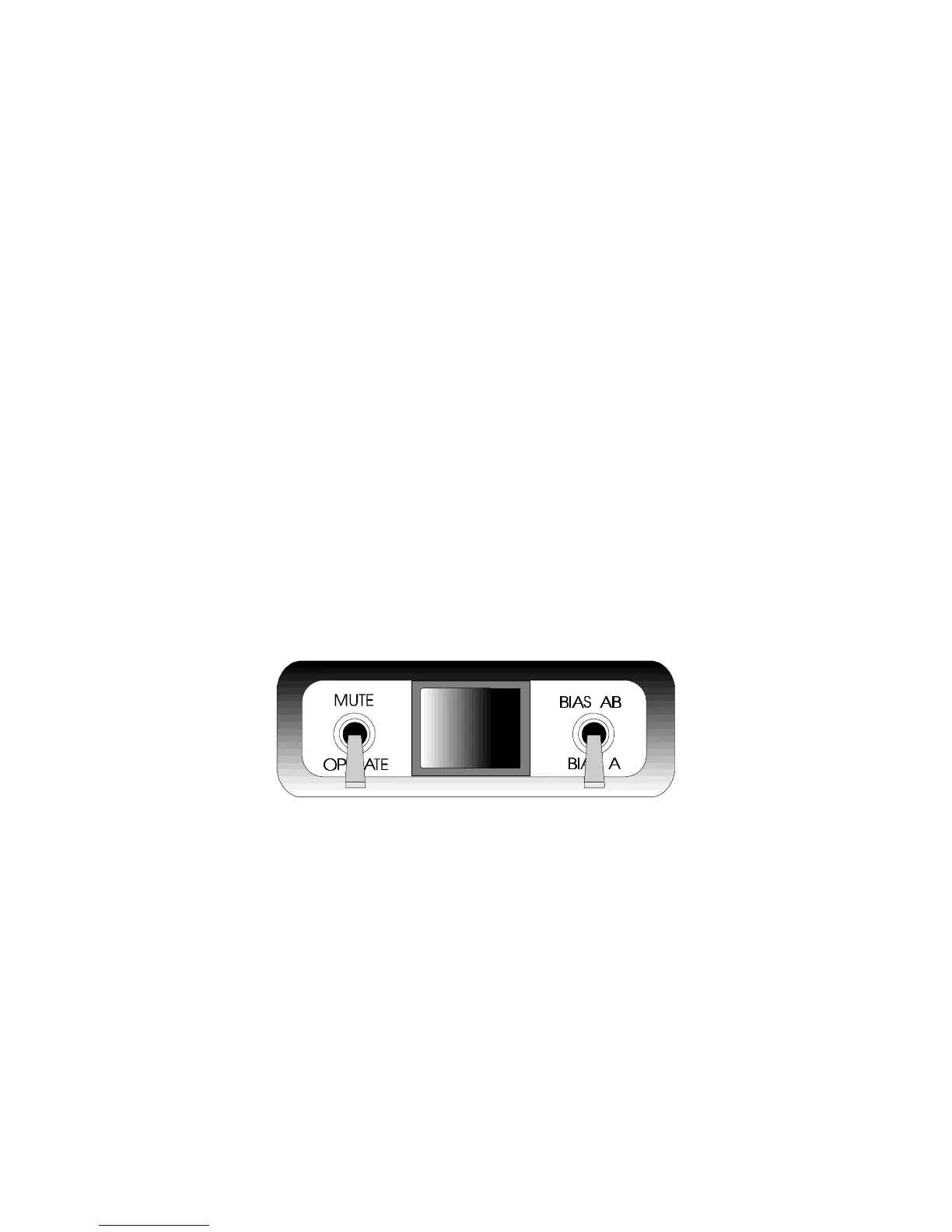 FRONT PANEL LAYOUT SHOWING MAINS, MUTE & BIAS SWITCHES