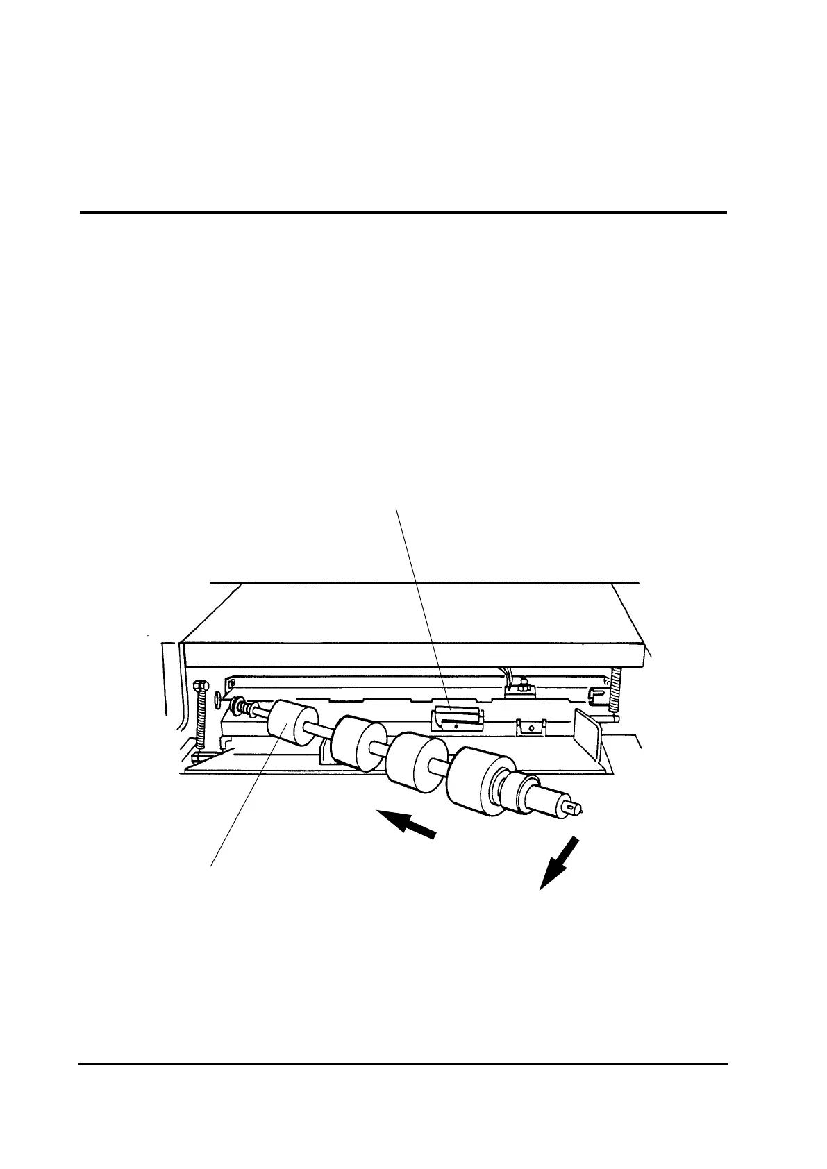 1 Remove the feed roller assembly shaft by pressing it