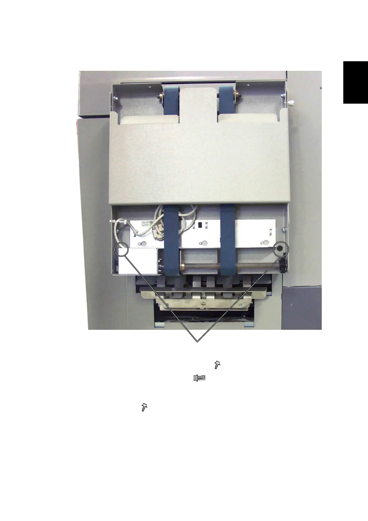 2. Disconnect the Belt stacker cable ( x 1).