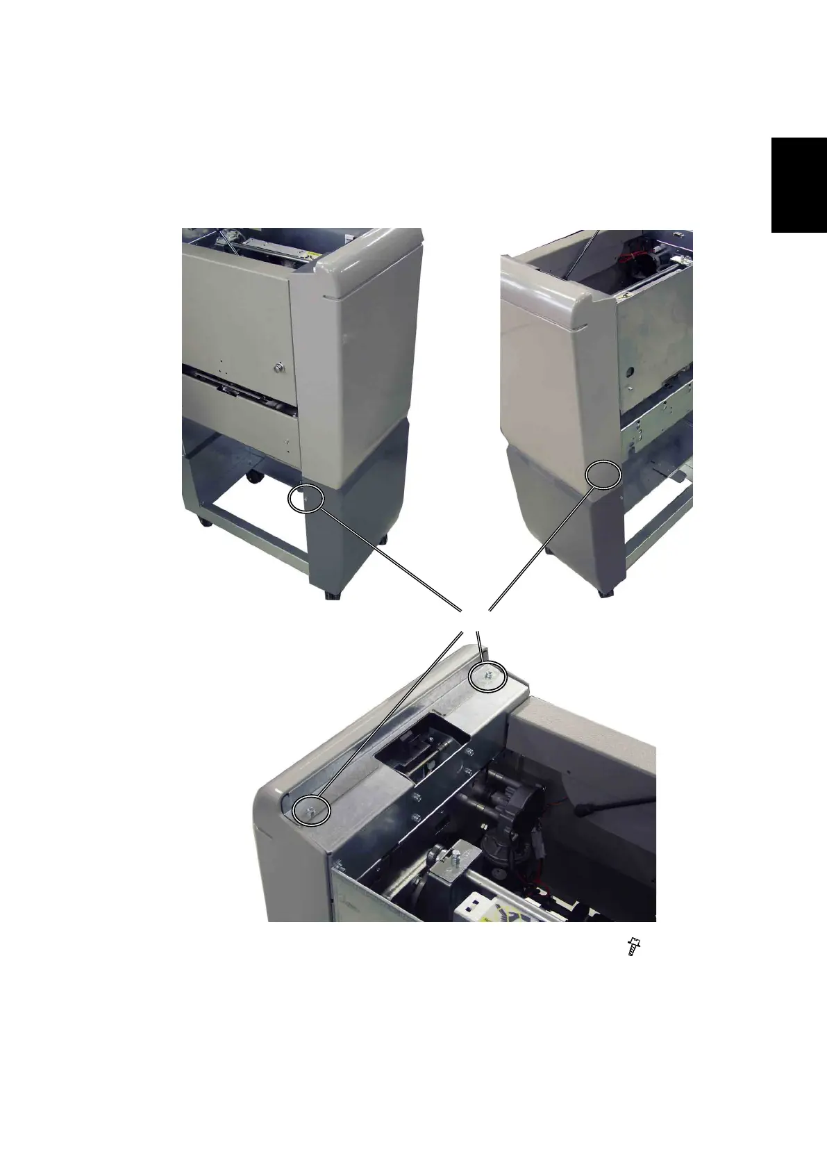 1. Remove the Trimmer front cover by removing the screws [A] ( x 4).