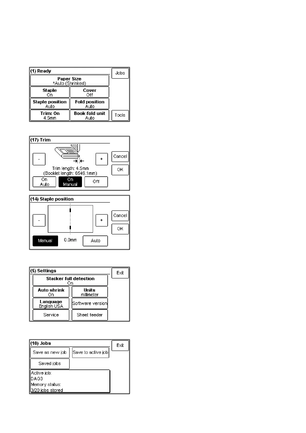 opens the Jobs screen. From here you can load,