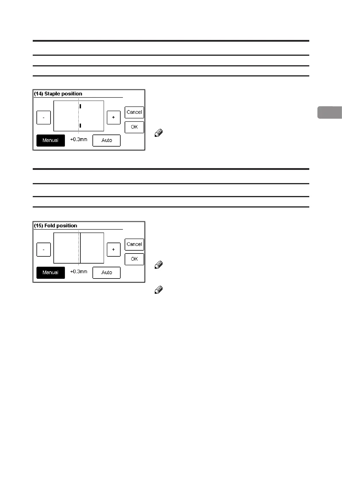 [-] or [+] button to change position of the staples