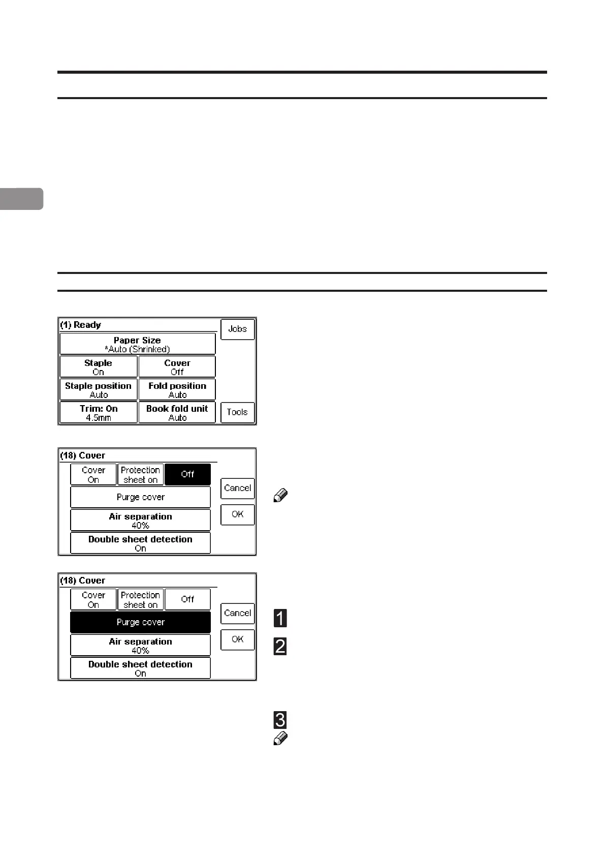 If a Cover Feeder is present, the [Cover] button will be visible in the control panel. Set to On,