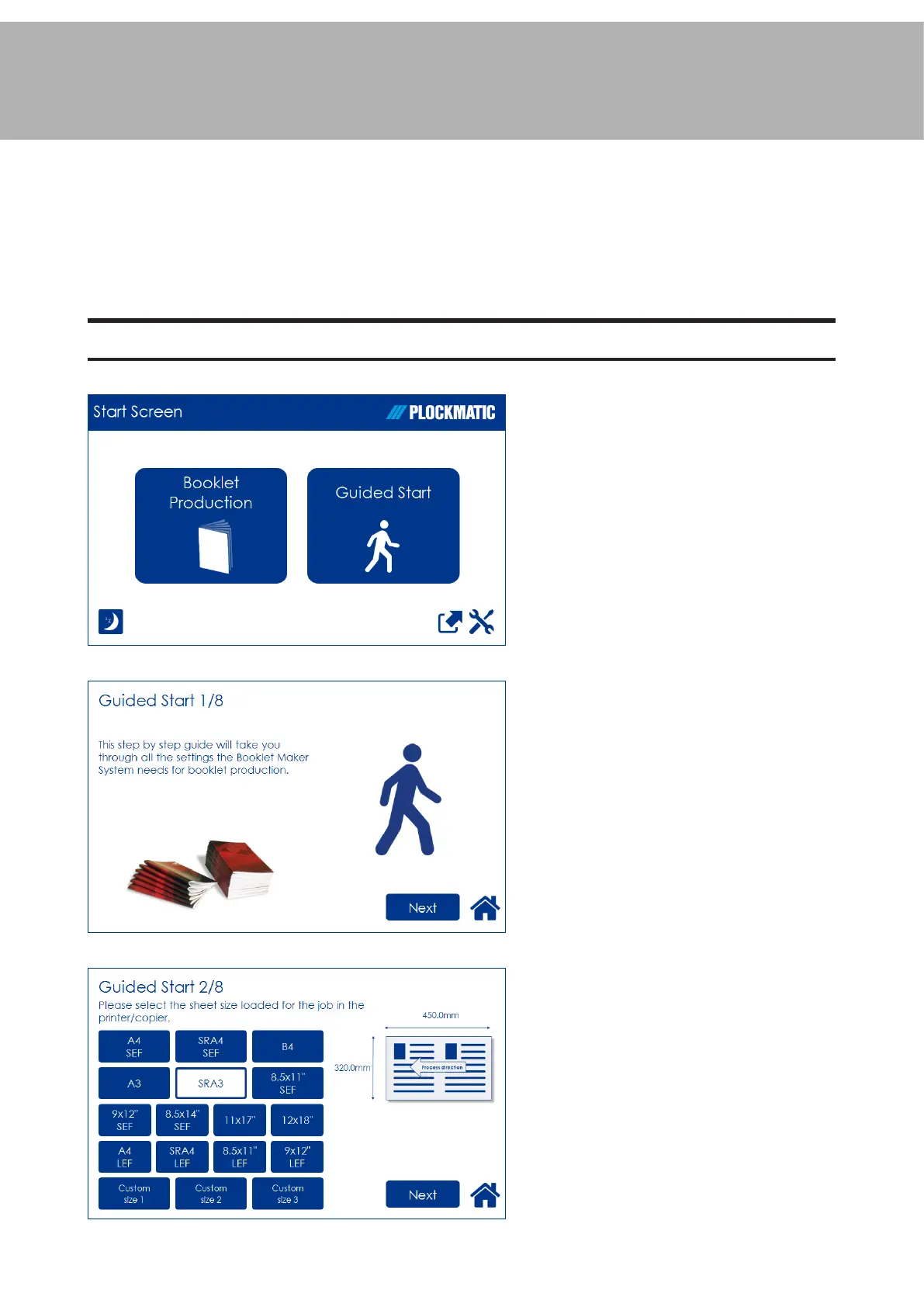 Guided Start is a function that takes you through all the basic settings the Booklet Maker