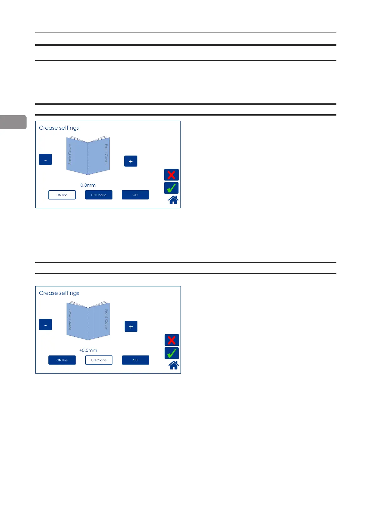 The Crease function makes it possible to crease the cover sheet of the booklet in order to avoid