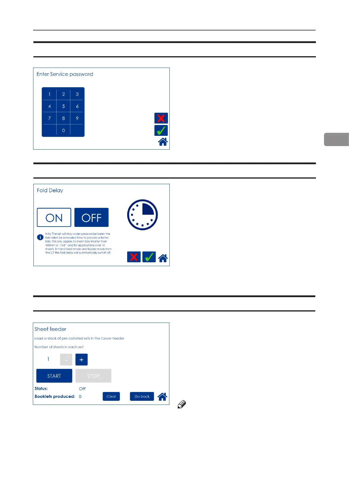 Plockmatic BLM 50 - Service Mode; Fold Delay; Sheet Feeder