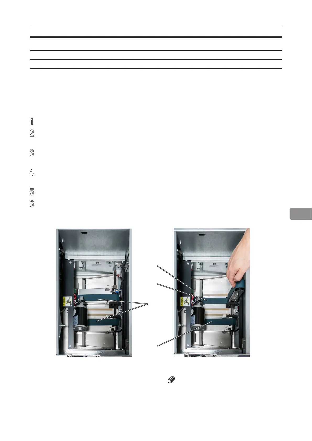 Press the release latch (B), one to each and lift up the upper feed belts to access the