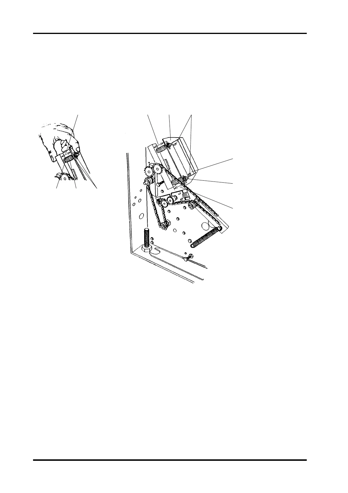 7. Adjust by loosen the two screws (7) (from the inside of the machine) and reposition the