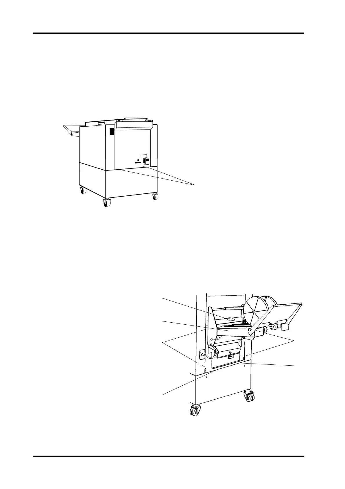 5. Tip the SR 85 by placing 50 mm or greater distances between the outfeed end of the