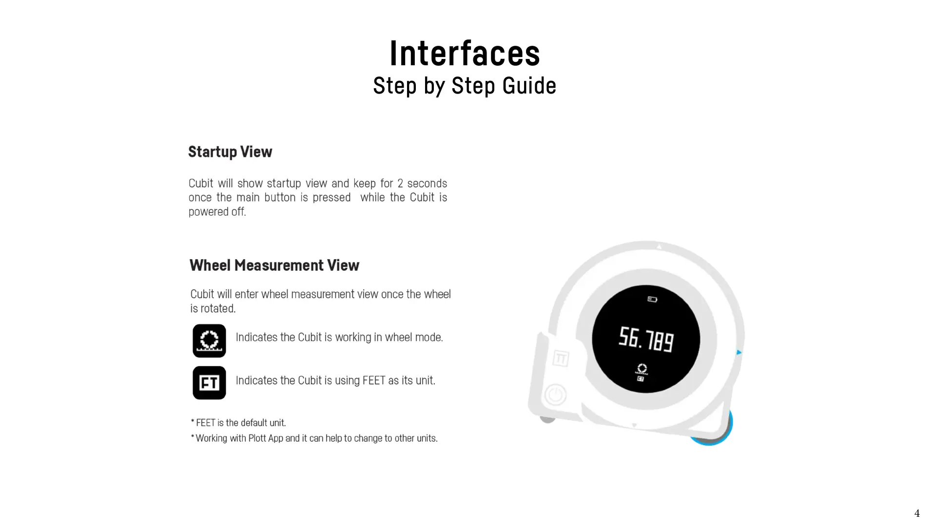 Plott Cubit - Wheel Measurement View; GUIDE View; GUIDE Mode: Corner Guidance; GUIDE Mode: Current Guidance Point