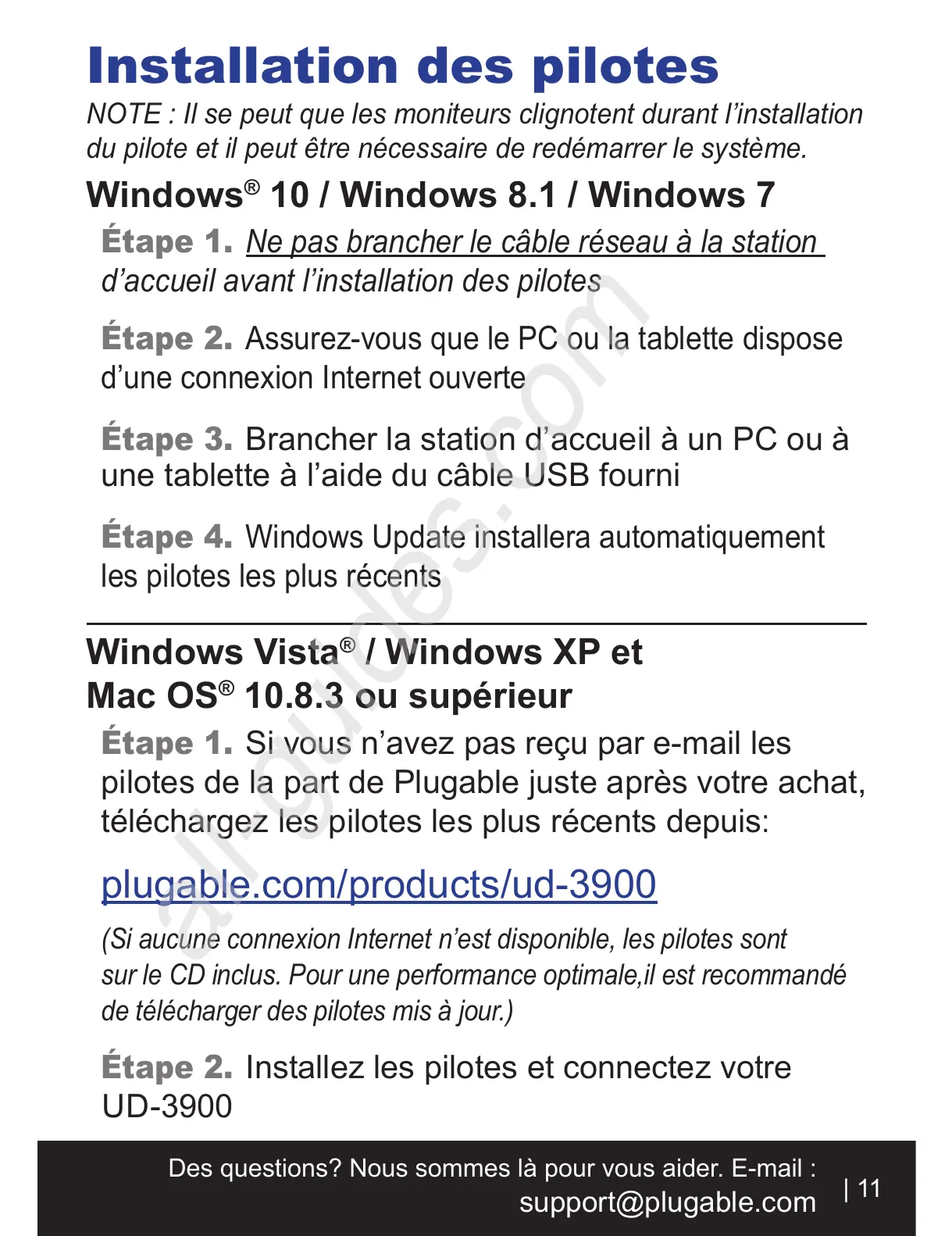 pilotes de la part de Plugable juste après votre achat,