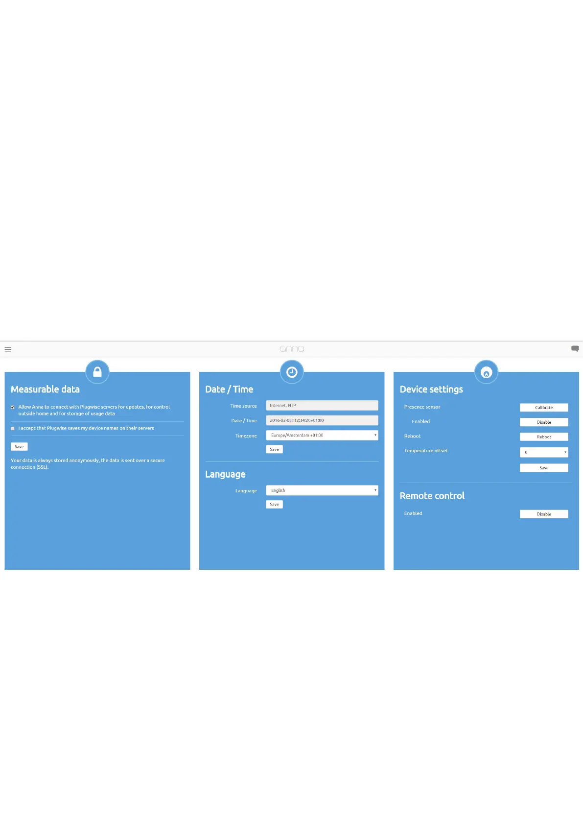Plugwise Anna - System Settings - Part 1; Measurable Data and Privacy; Date, Time, and Language; Device Settings and Remote Control