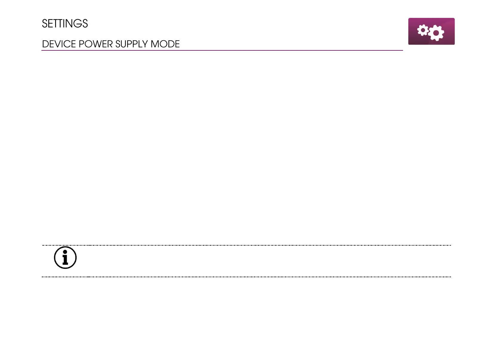 First option to set should be settings for power supply mode. There are two available modes for supplying the device, which are described
