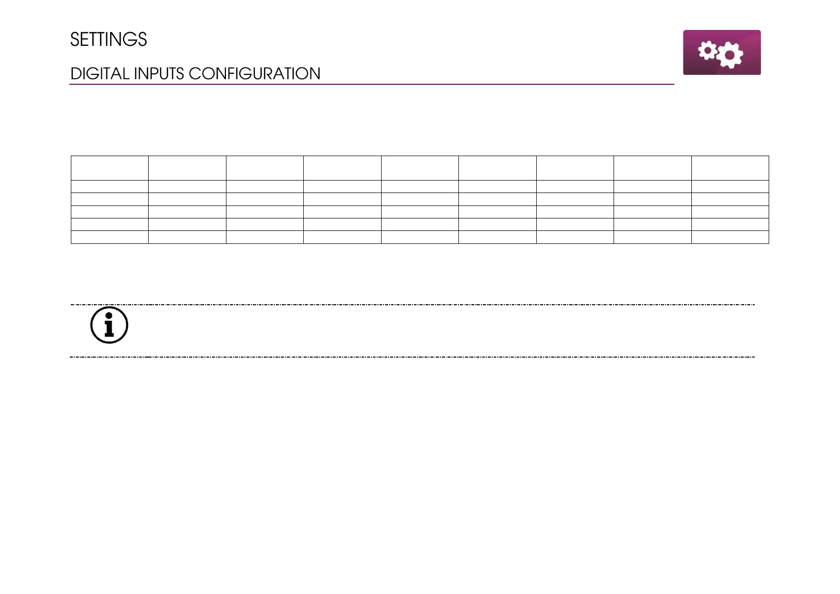 • Navigate to menu Inputs/Outputs → Digital inputs → Configuration