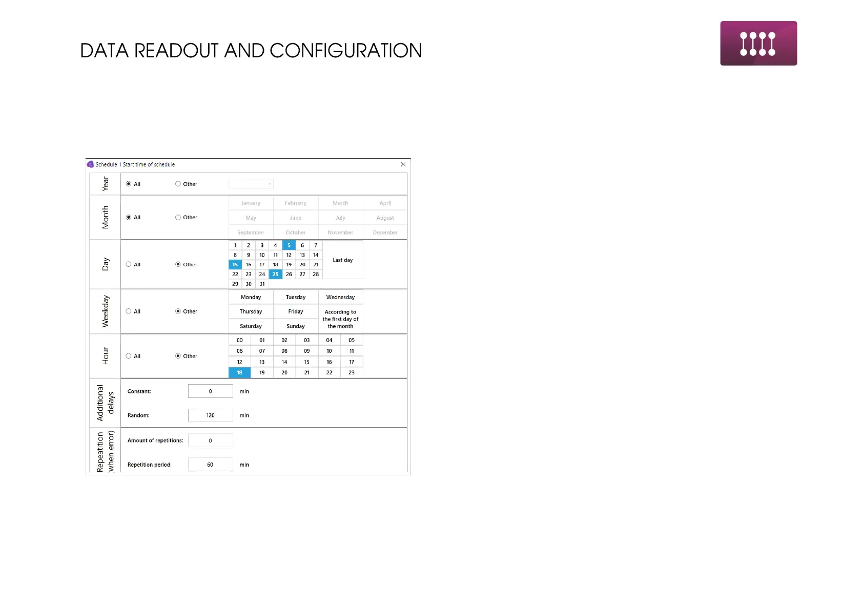 2. Month of the schedule enabling. All – schedule will work