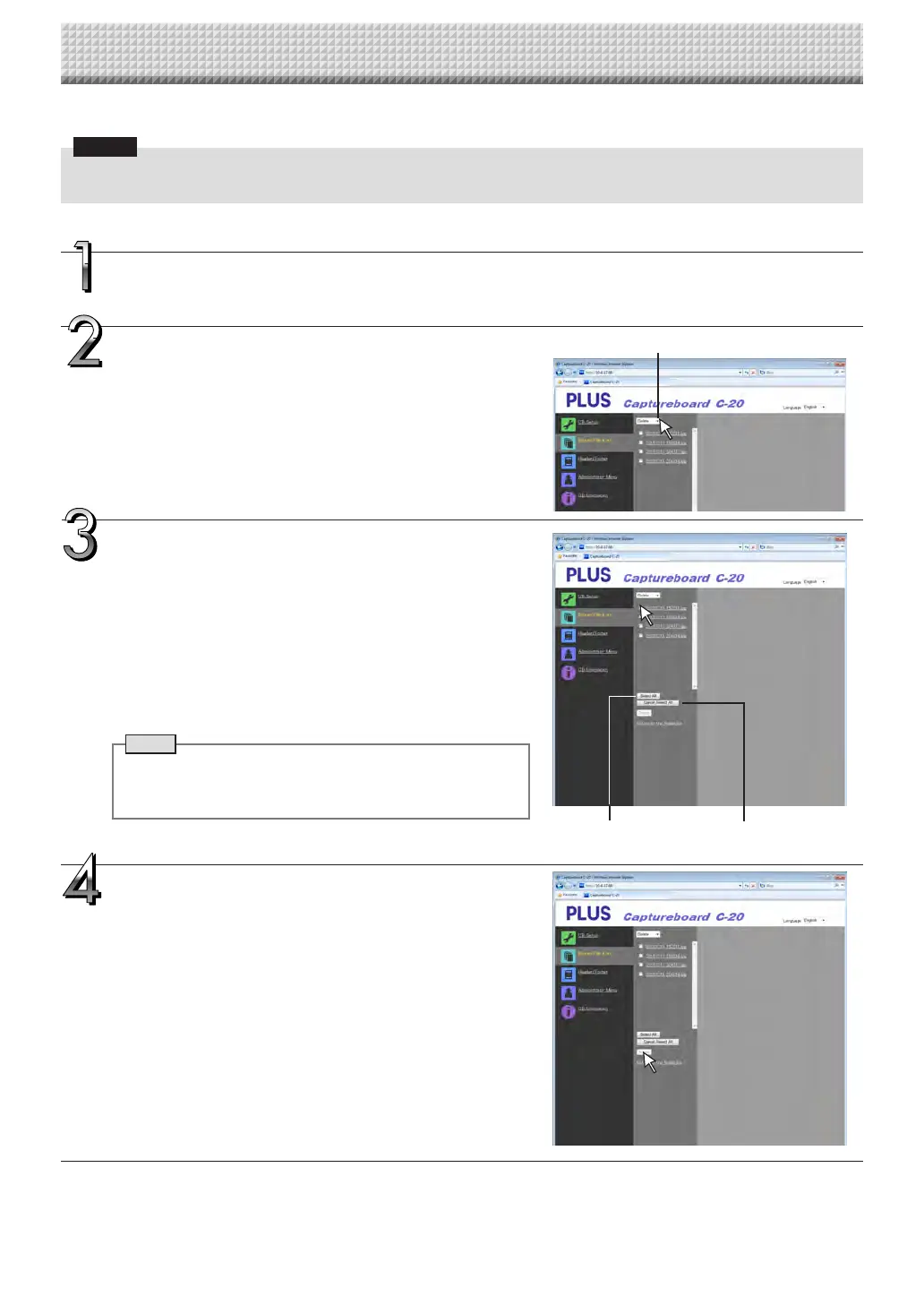 • When“Invalid” is setat “Delete User Image Data”in “Security Setting”,files cannot bedeleted. This canbe changed to