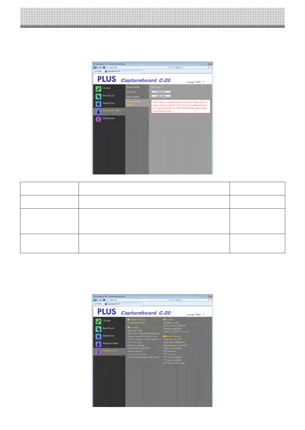Thisdisplaysthecontentsofthedetailedsettingsmadeonthecaptureboardandthecaptureboard’sfirmwareversion.
