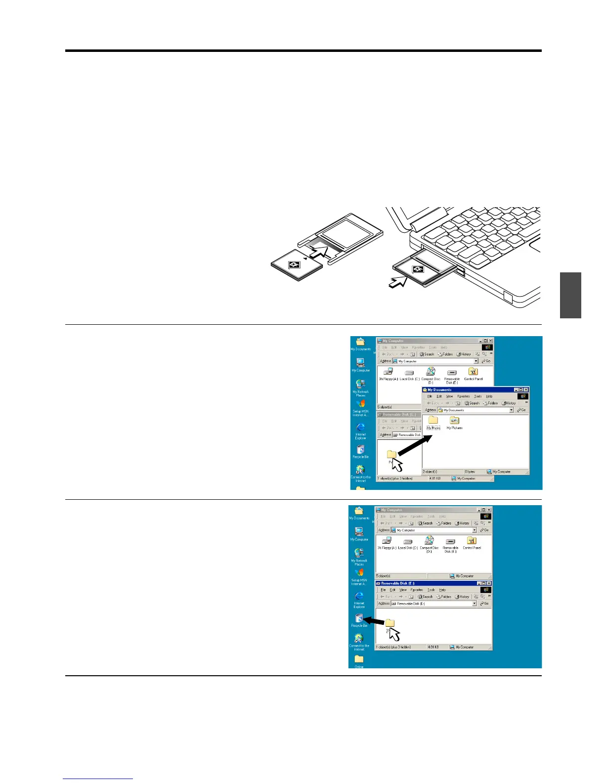1.Insert the memory card into the PC card