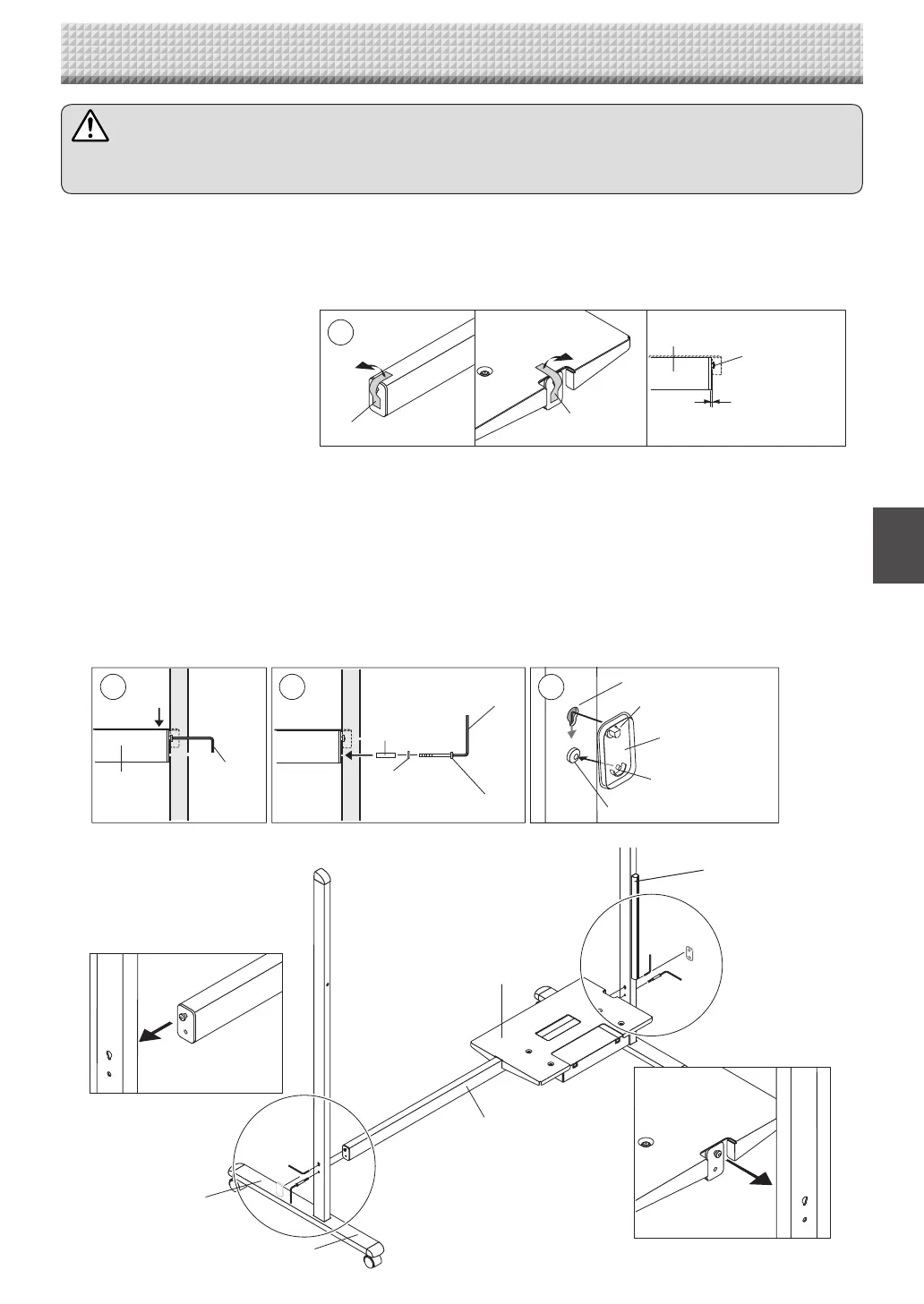 • Lock the casters of the T-shaped feet (left and right). If not, the stand could slip, causing the stand or main