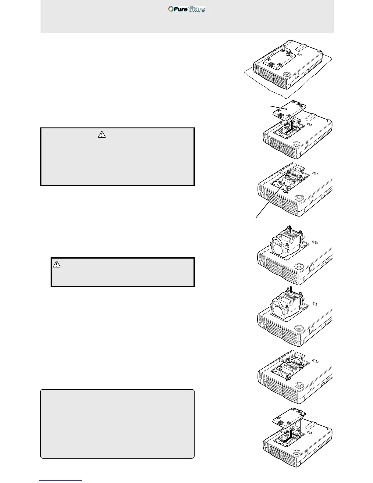 8 Fixez la cartouche de lampe en revissant ses trois vis de