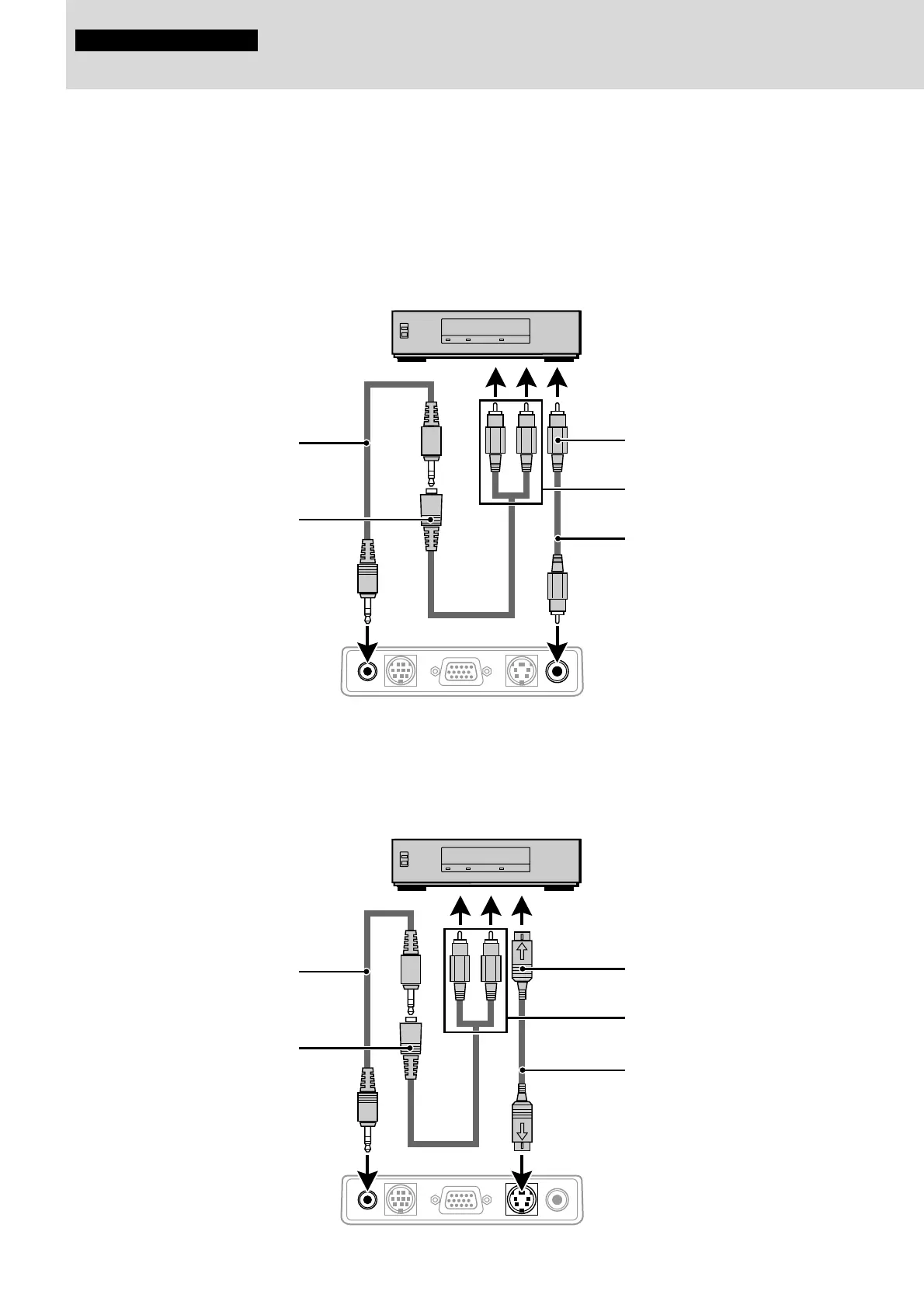 You can connect up to two pieces of video equipment to the unit following the illustrations below.