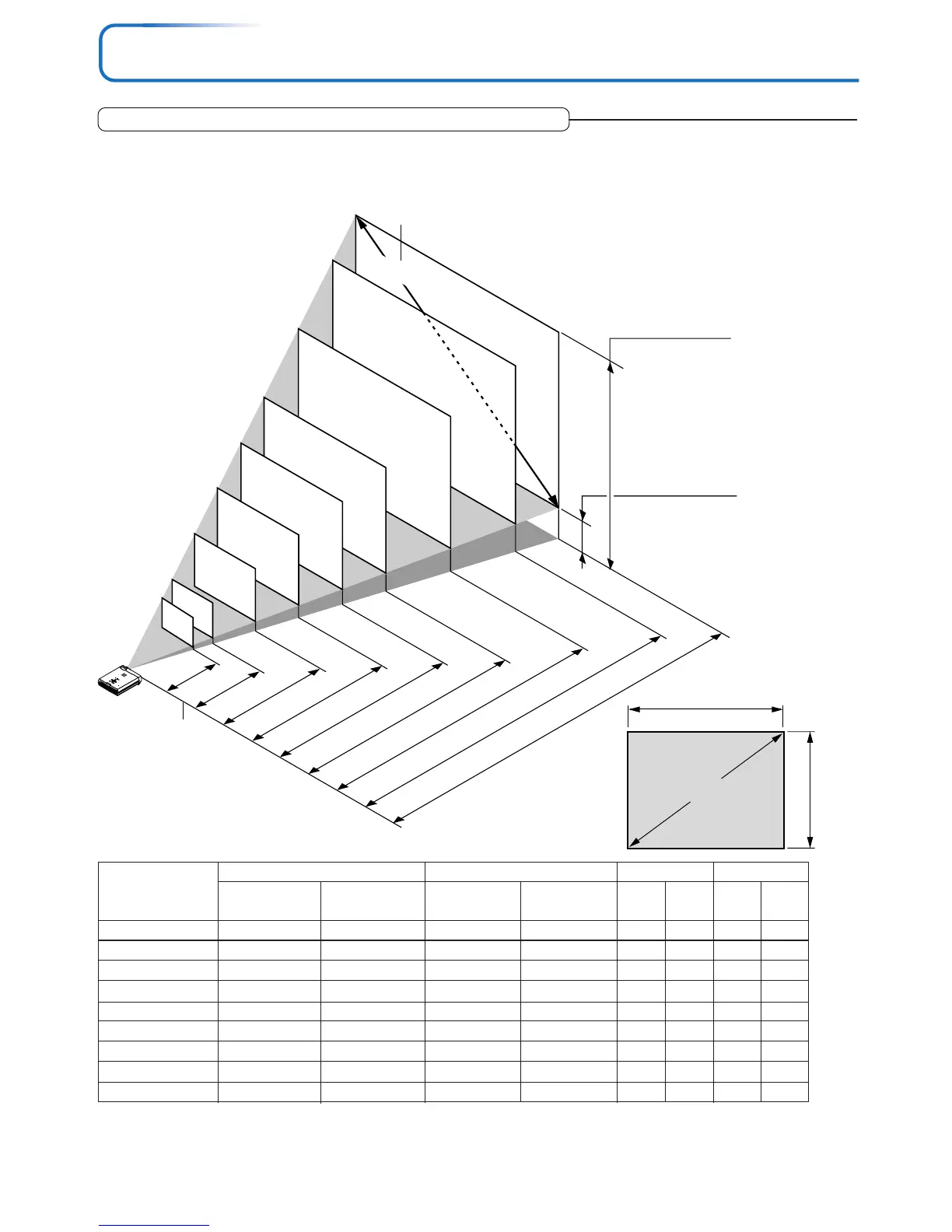• Use this information as a guide to find out about the screen size when the projector is placed at a certain location, or