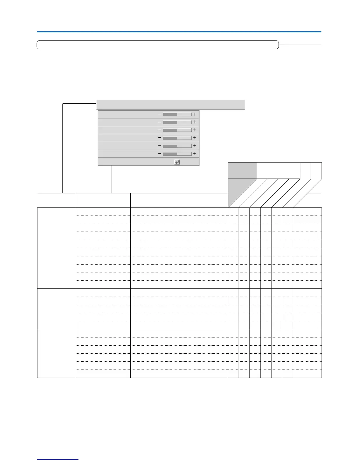 List of Item Names Offering Input Selection and Adjustments/Settings