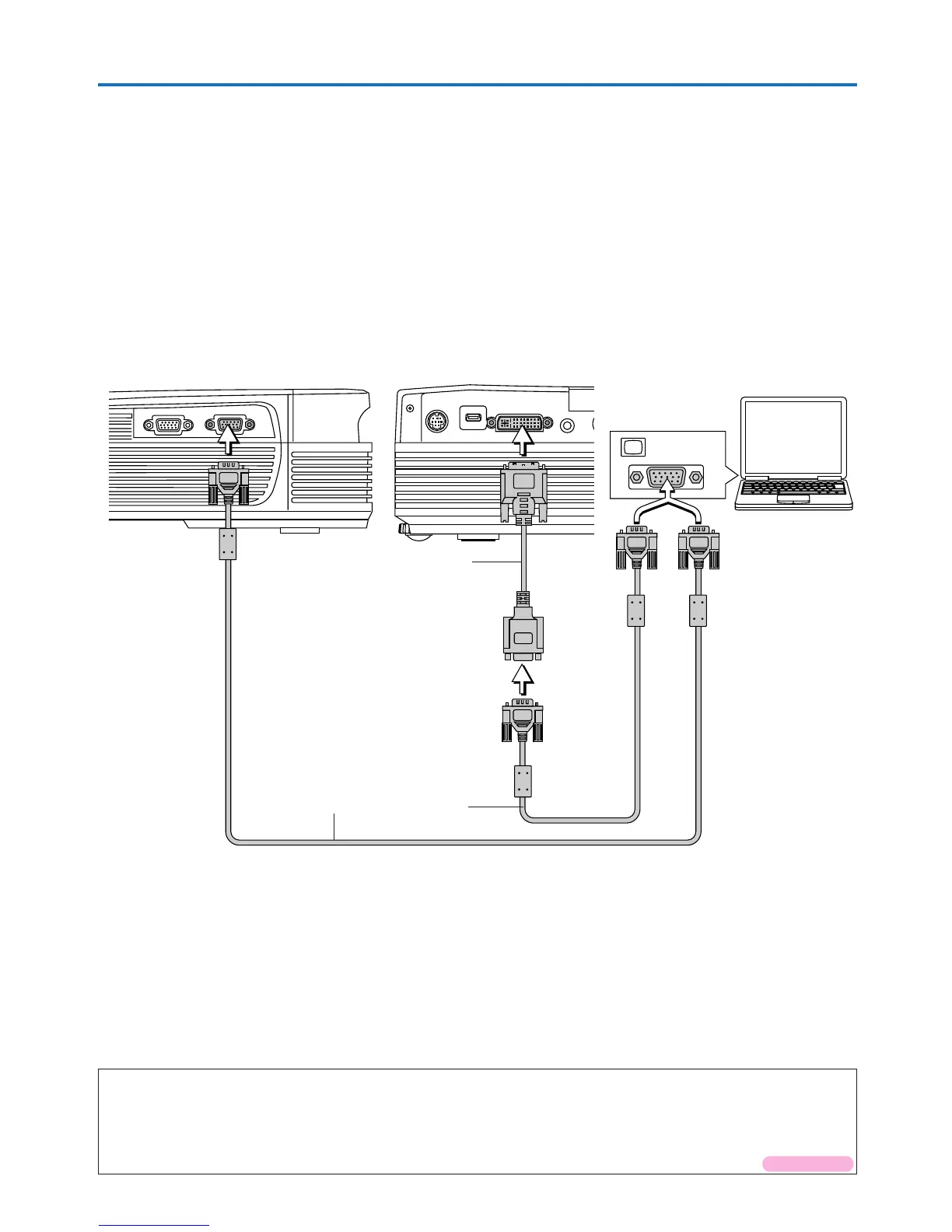 • When making connections with the DVI connector of the projector, please make the connection via the supplied DVI/mini D-