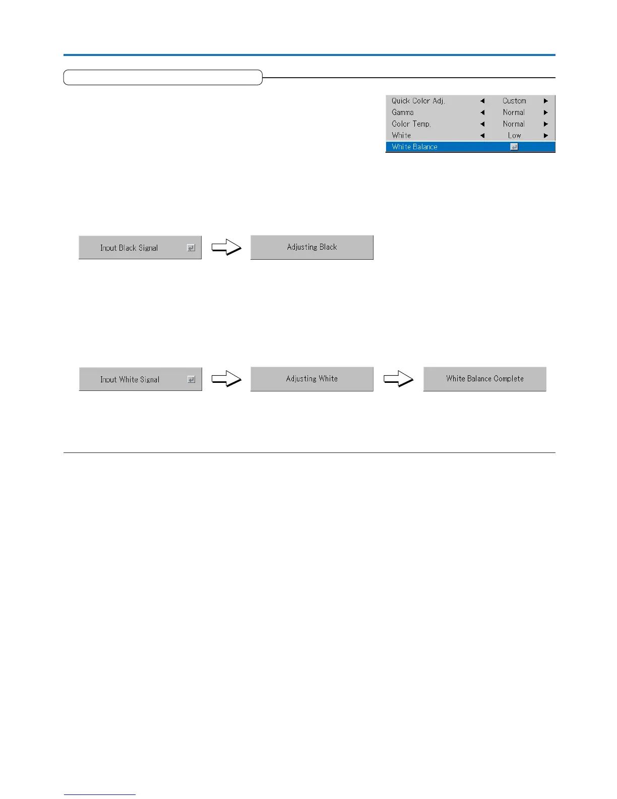 6 Press the ENTER button. The display will change to [Adjusting White]