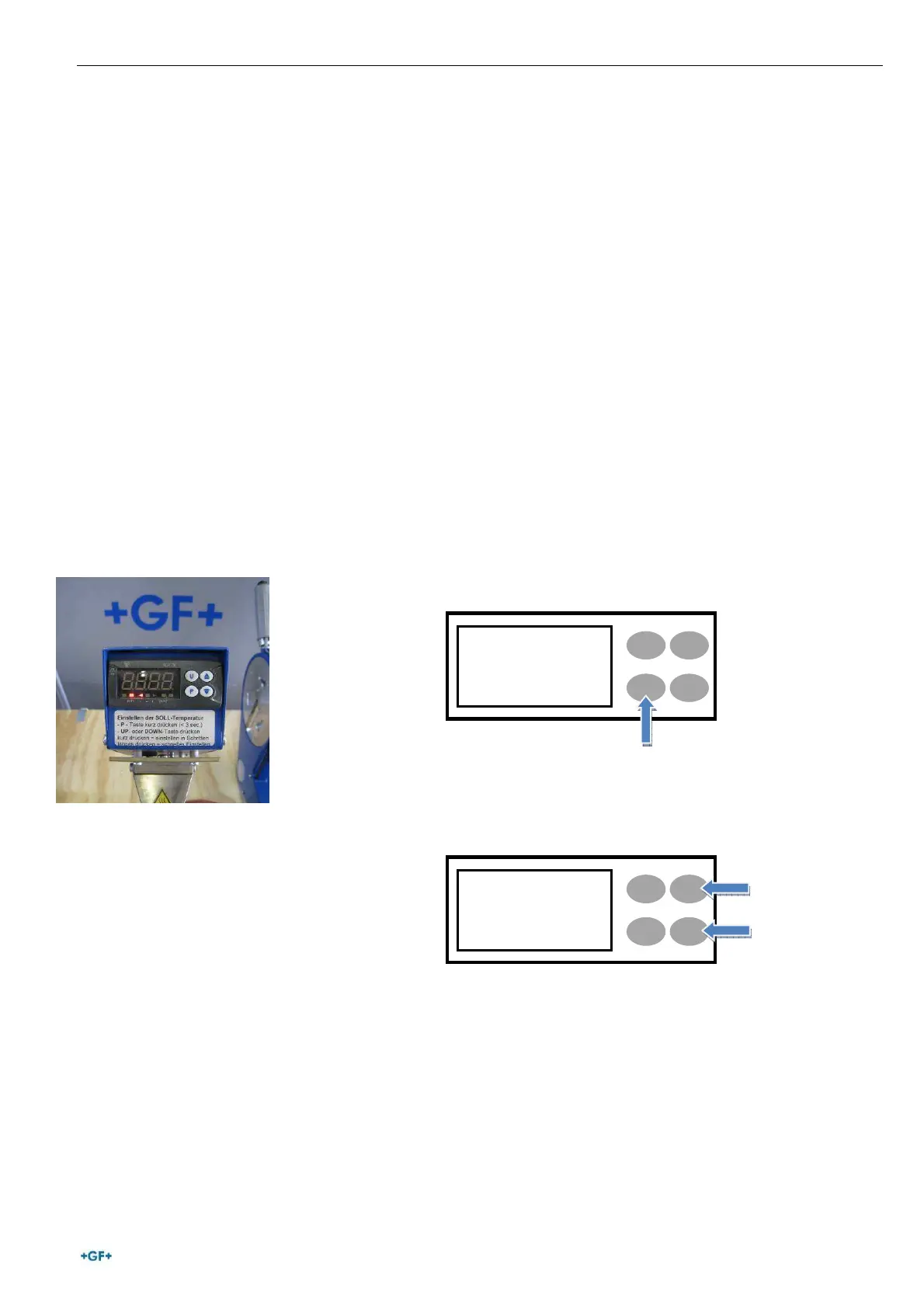To set the welding temperature, press the button P shortly < 3 sec.