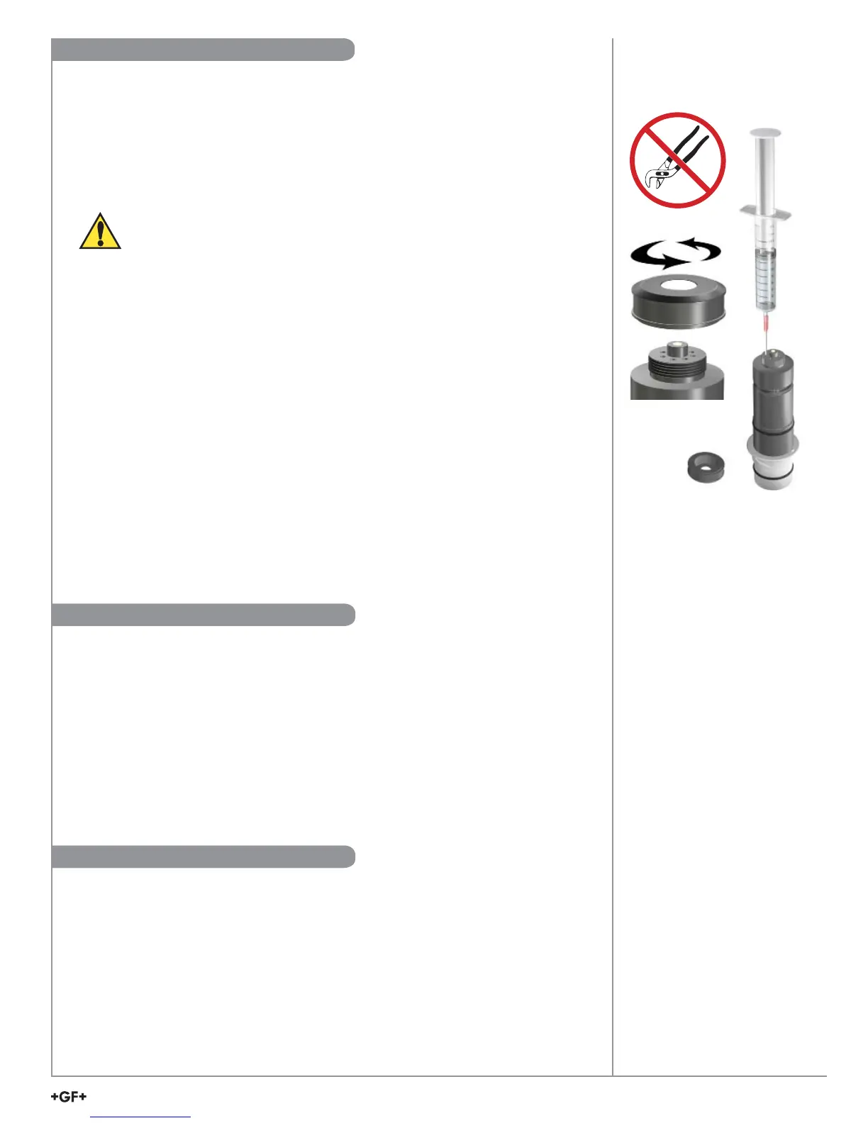 electrolyte solution. Slowly injecting the electrolyte solution into the sensor to avoid