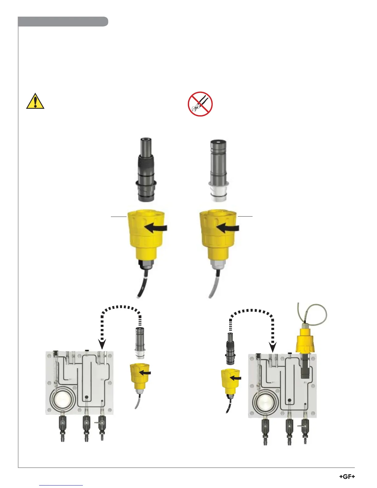 • Insert the electrode facing up. Turn the locking ring ¼-turn clockwise to lock the electronics in place.