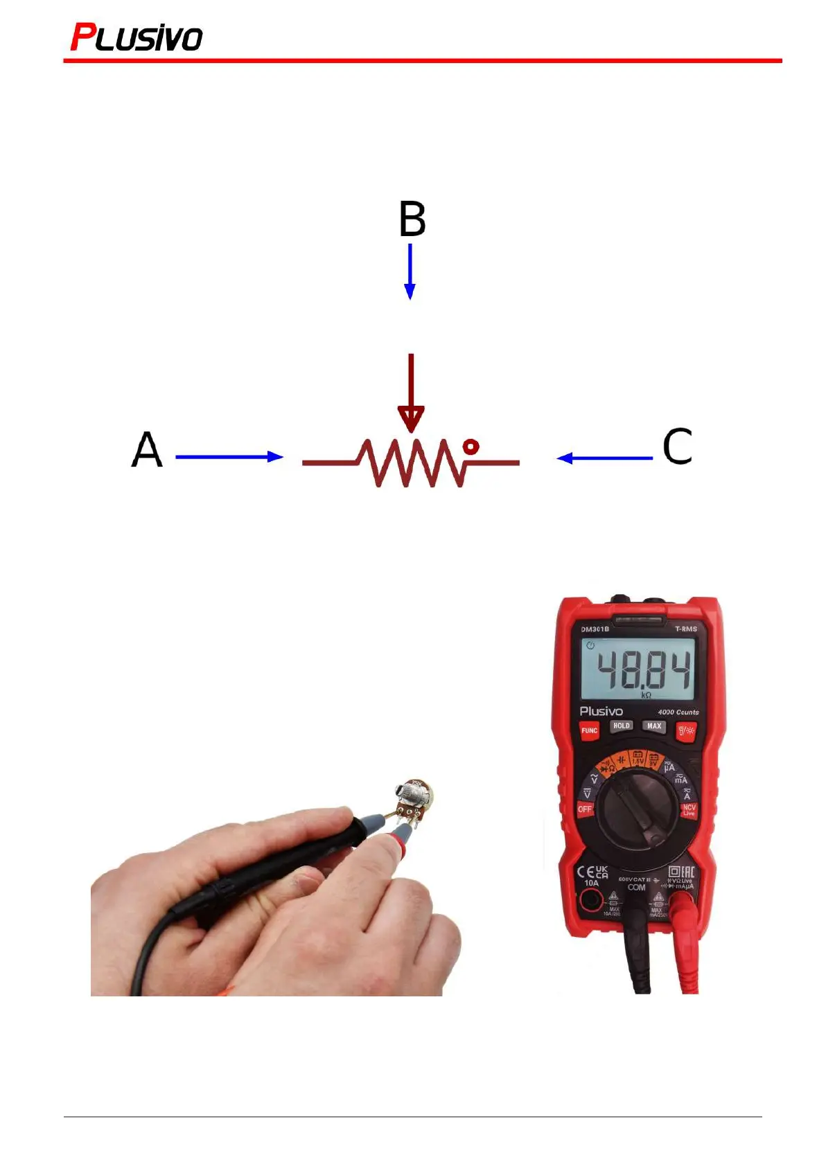 Plusivo DM301B - 8.7 Testing Some Components Using Multimeter; 8.7.1 Potentiometer Test