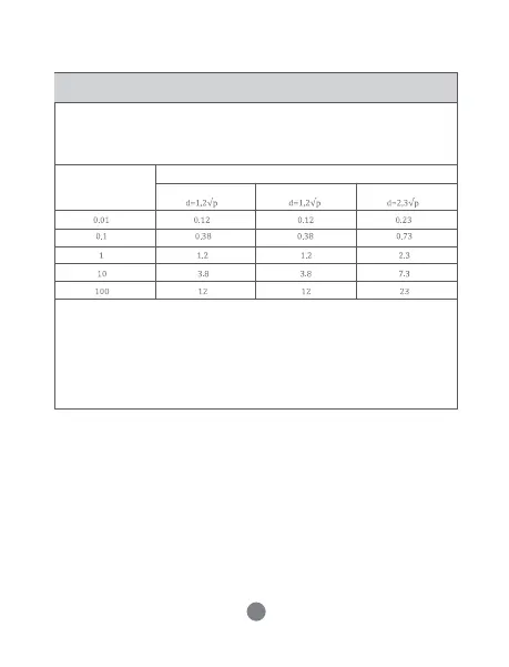 En yüksek anma çıkış gücü yukarıda belirtilmeyen vericiler için, metre (m) cinsinden tavsiye edilen ayrım mesafesi d,