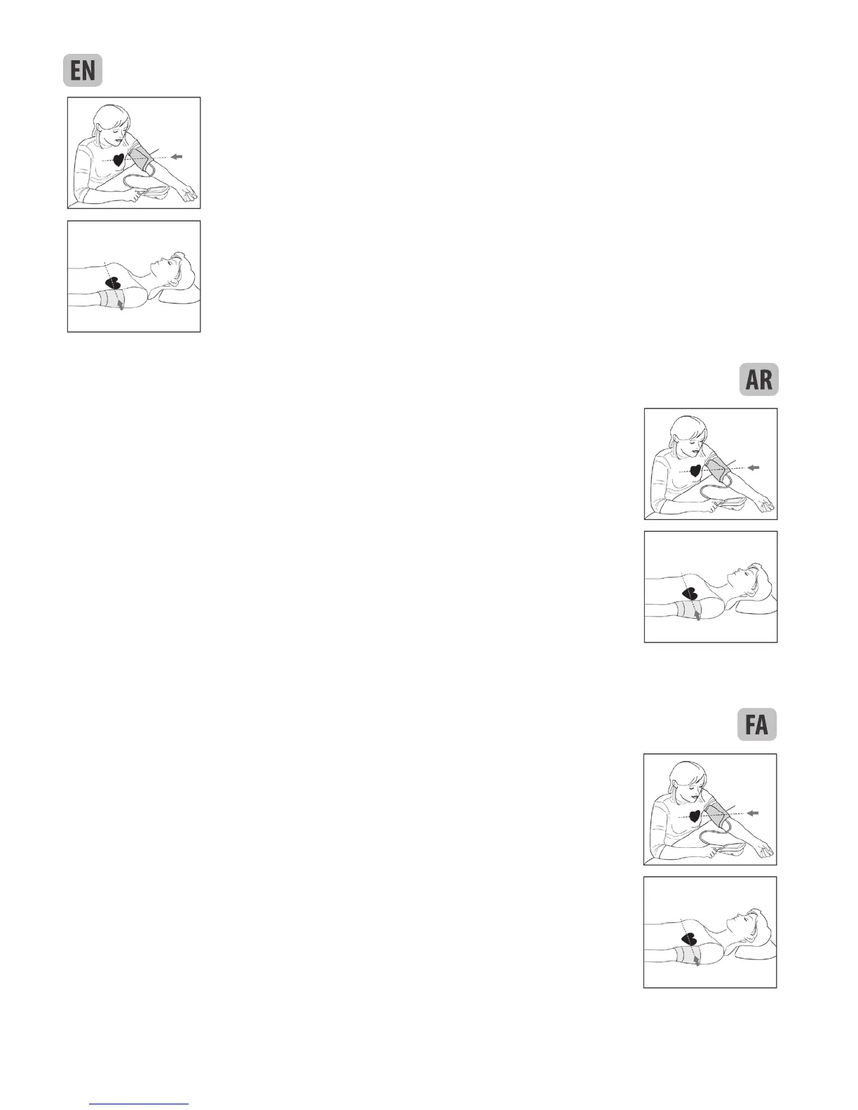 The cuff should be placed at the same level as your heart.