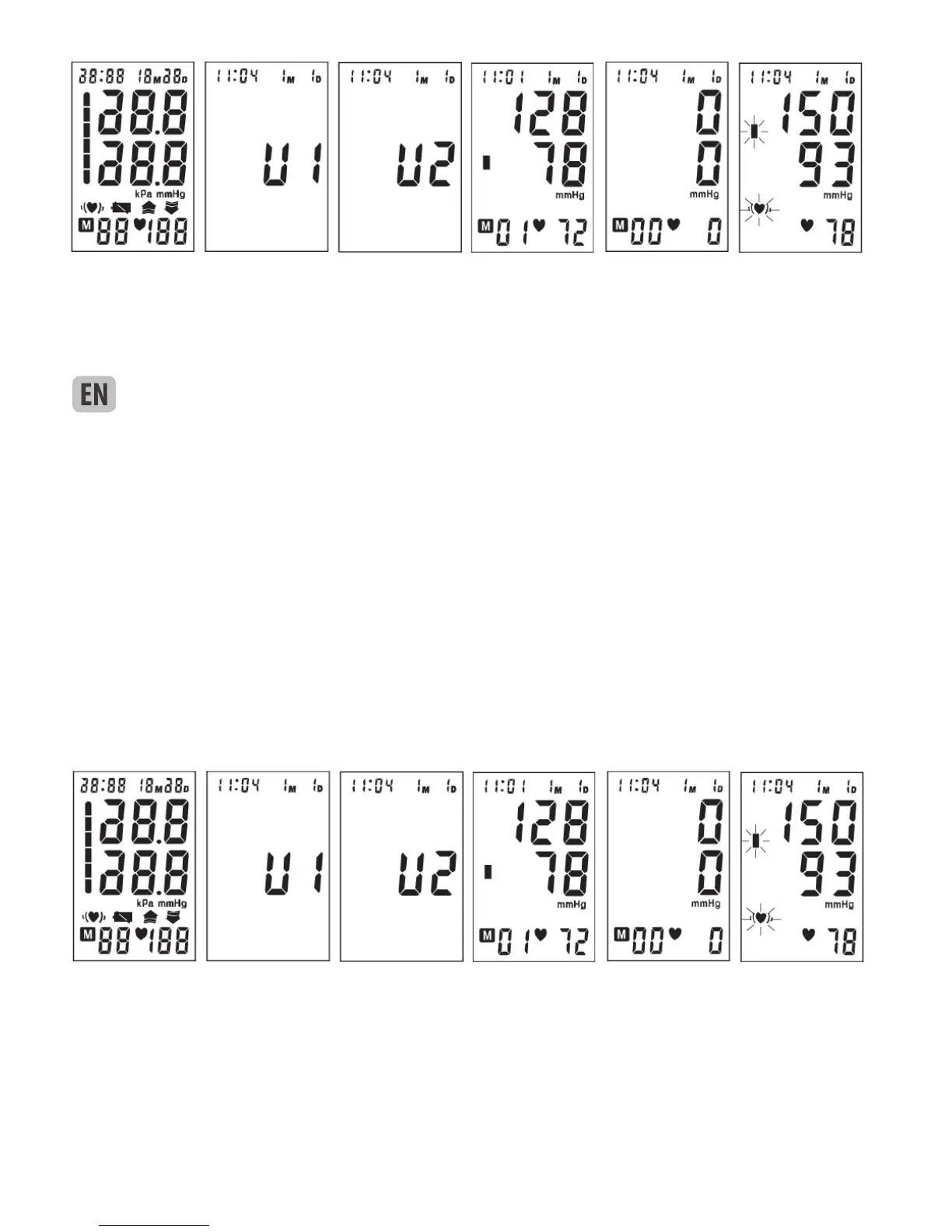 be calculated and displayed on the LCD. See picture 7-5. The irregular heartbeat symbol (if any) and blood