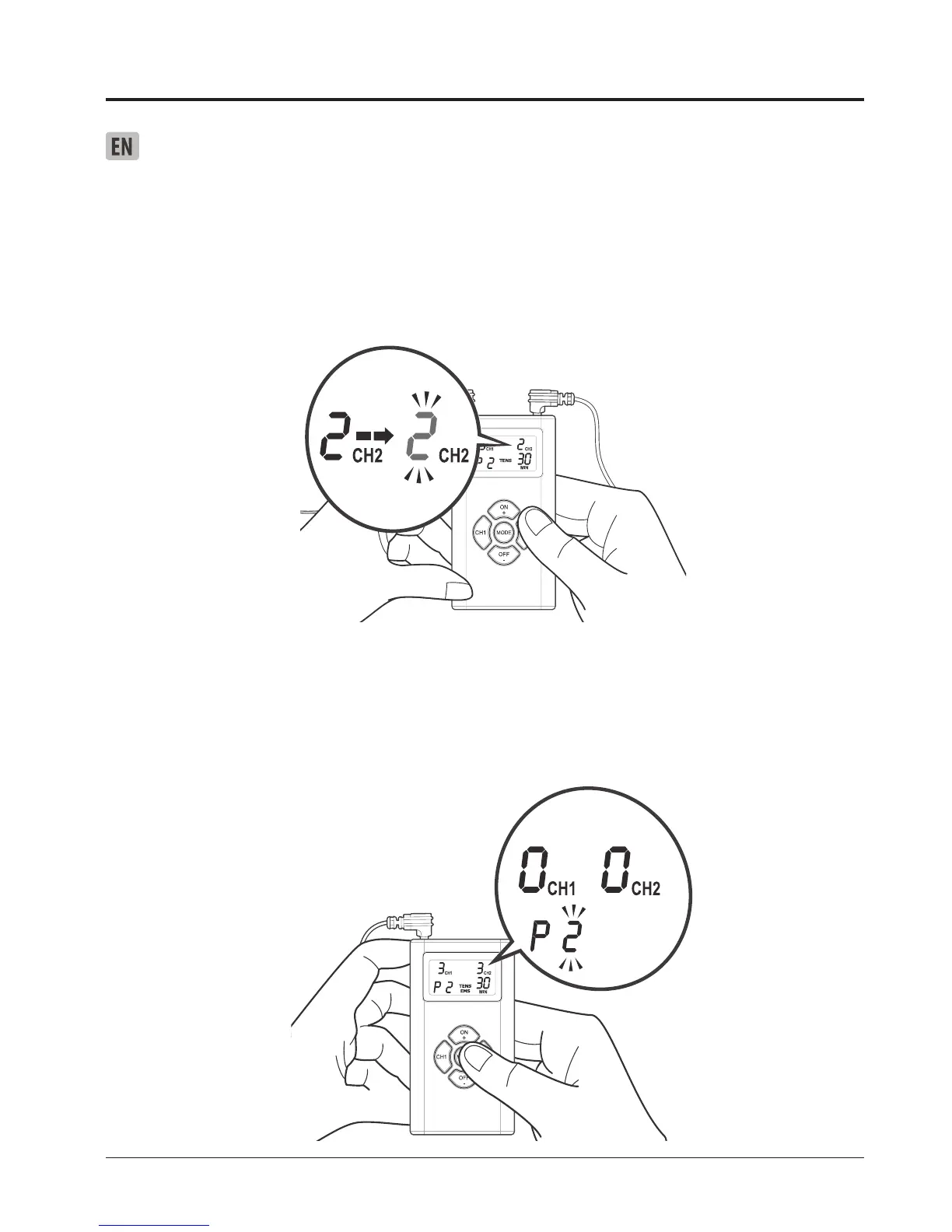 “CH2” will ash on the display.