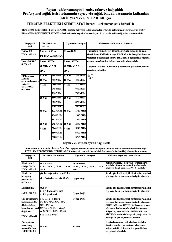 Plusmed pM-TE01 - EMC Declarations and Immunity; TENS;EMS Electrical Stimulator Declaration - Electromagnetic Immunity; Declaration - Electromagnetic Immunity