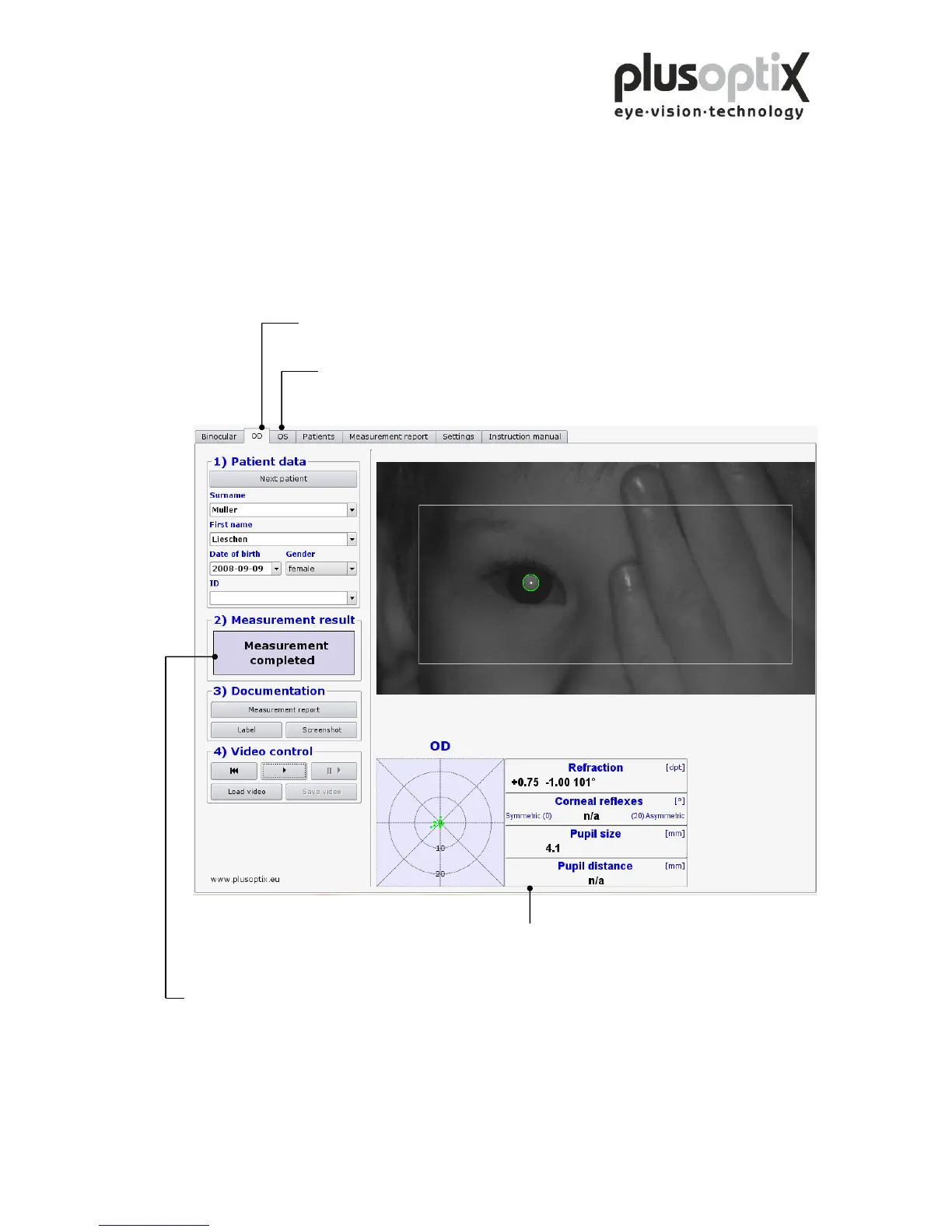 The monocular measurement function “OD” and “OS” allow you to measure each eye