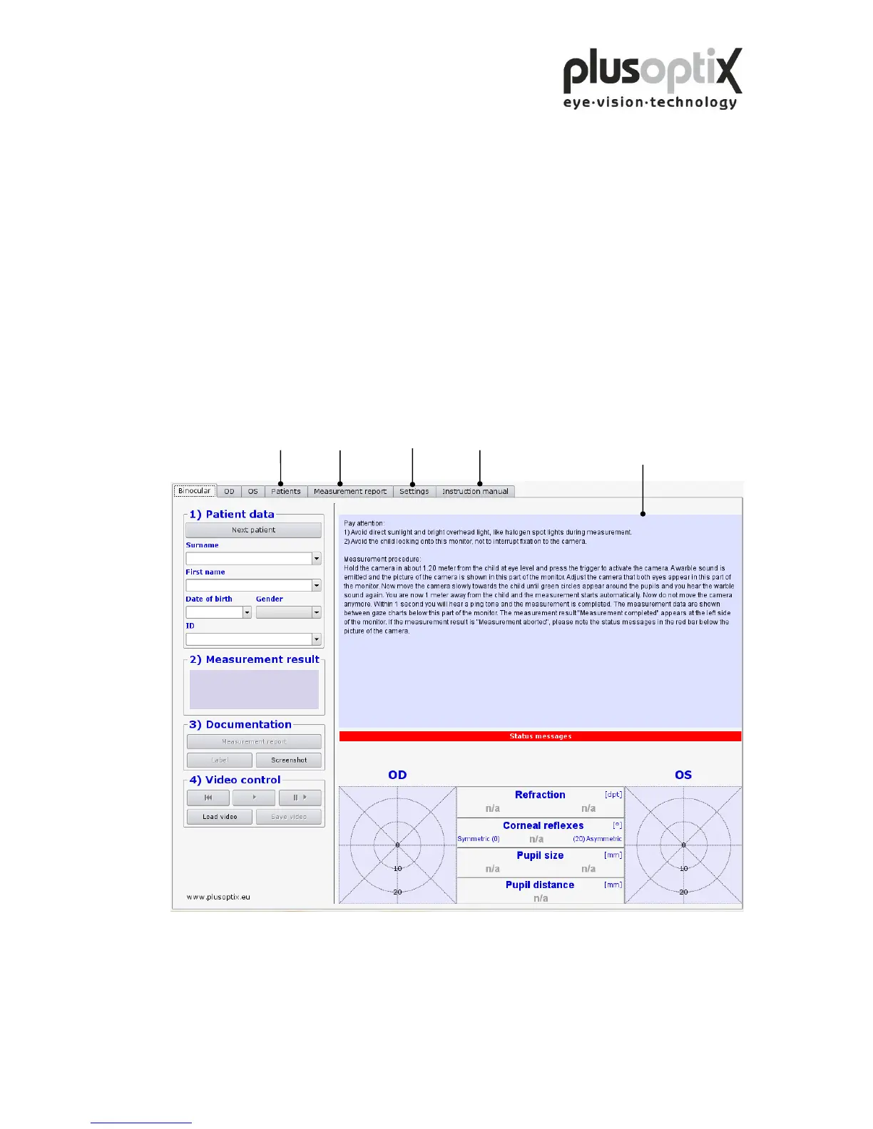 After loading the software (approx. 1.5 minutes) the “Plusoptix Start Page” appears.