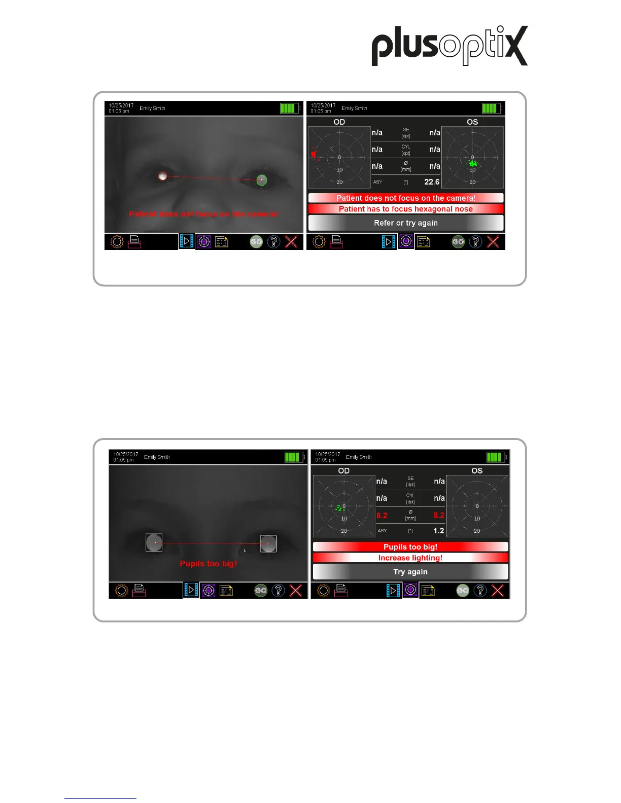 Cause: This error message is shown if one or both pupil diameters are greater than 8.0