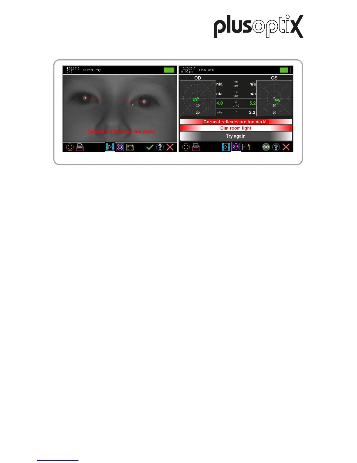 Cause: This error message is displayed if the corneal reflexes are too dark.