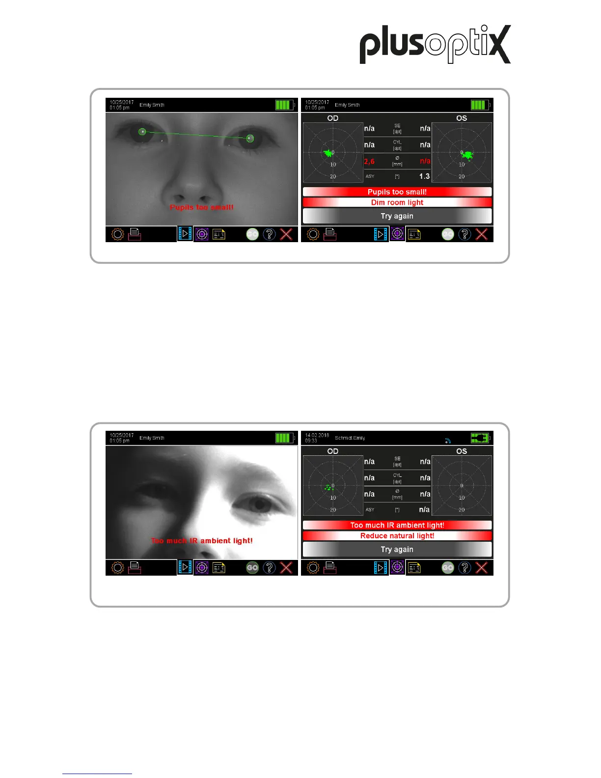 Cause: This error message is shown if one or both pupil diameters are smaller than 3.0
