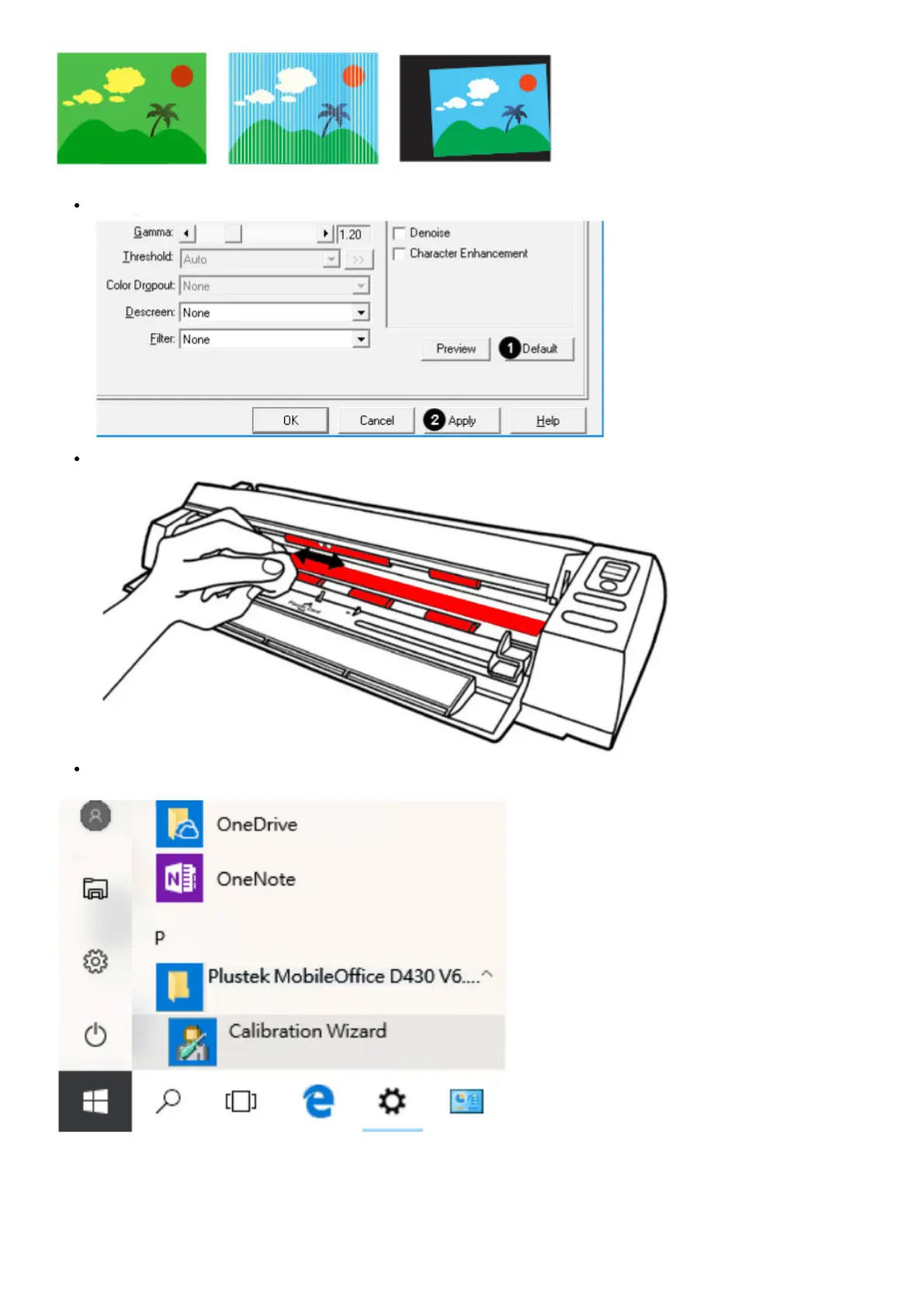Calibrate the scanner if the colors of the scanned image vary a lot. Find. Calibration Wizard as follows: