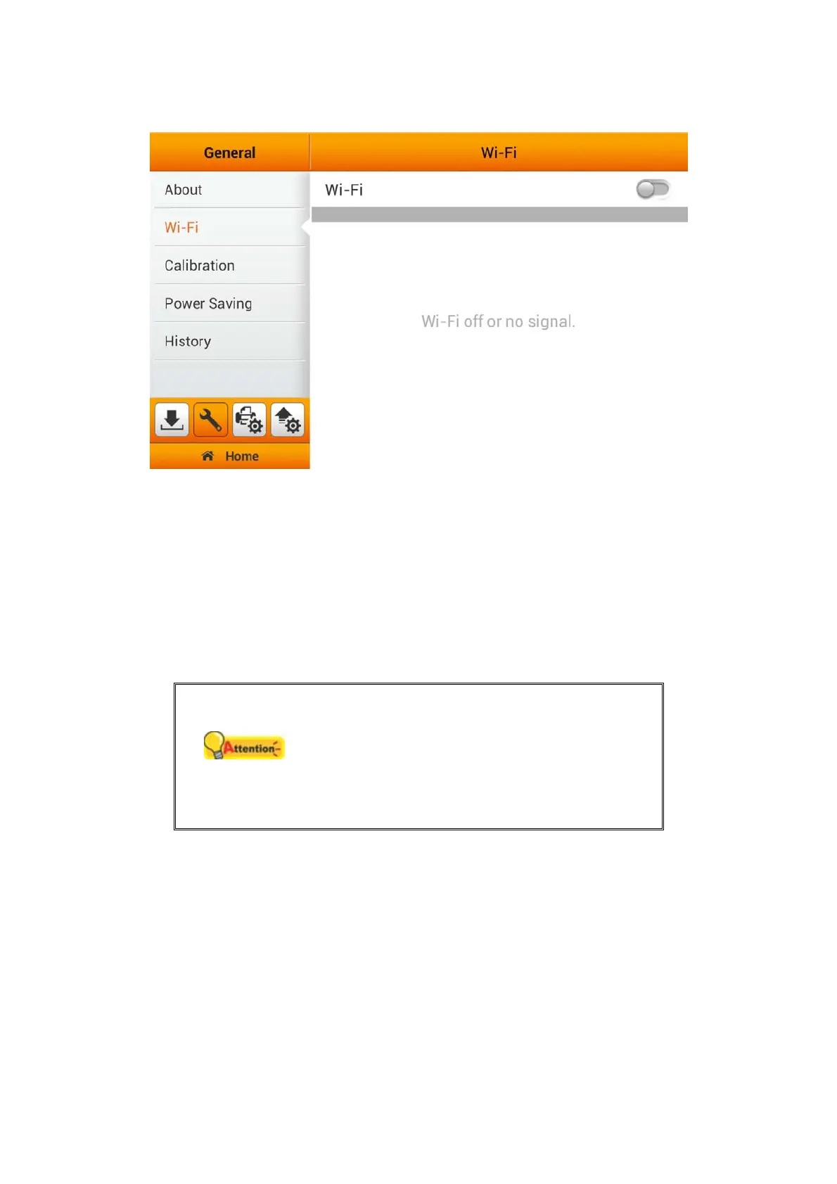 buttons. Tap the Start button to start the calibration process.