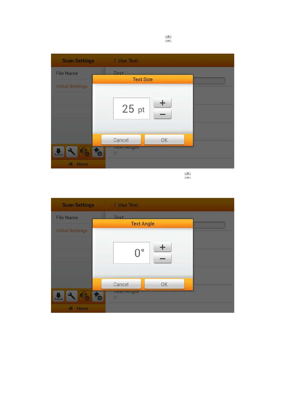 decrease the values. Tap the OK button to confirm the settings or tap Cancel to exit