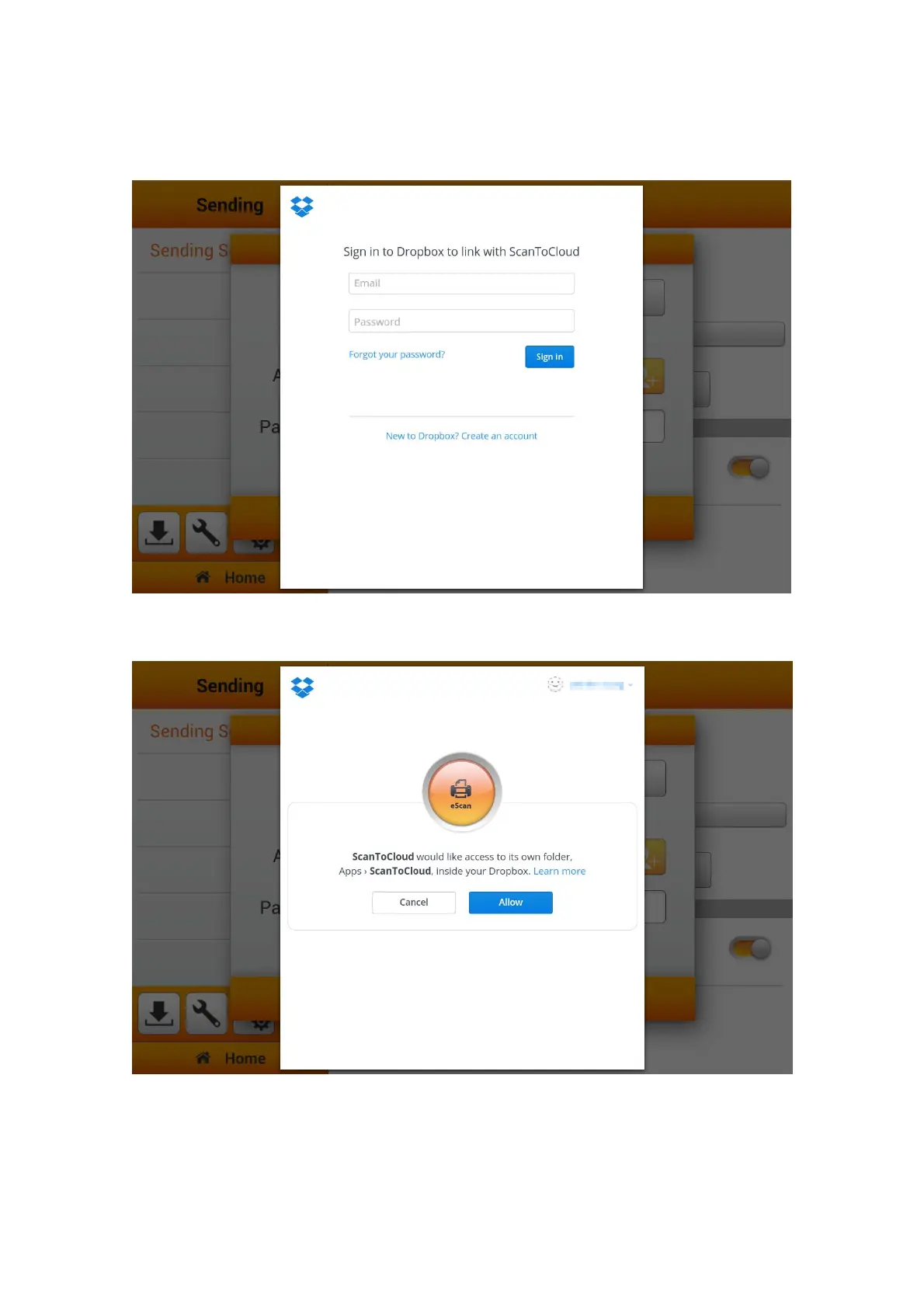 Tap on Allow button to allow the ScanToCloud to communicate with the Dropbox