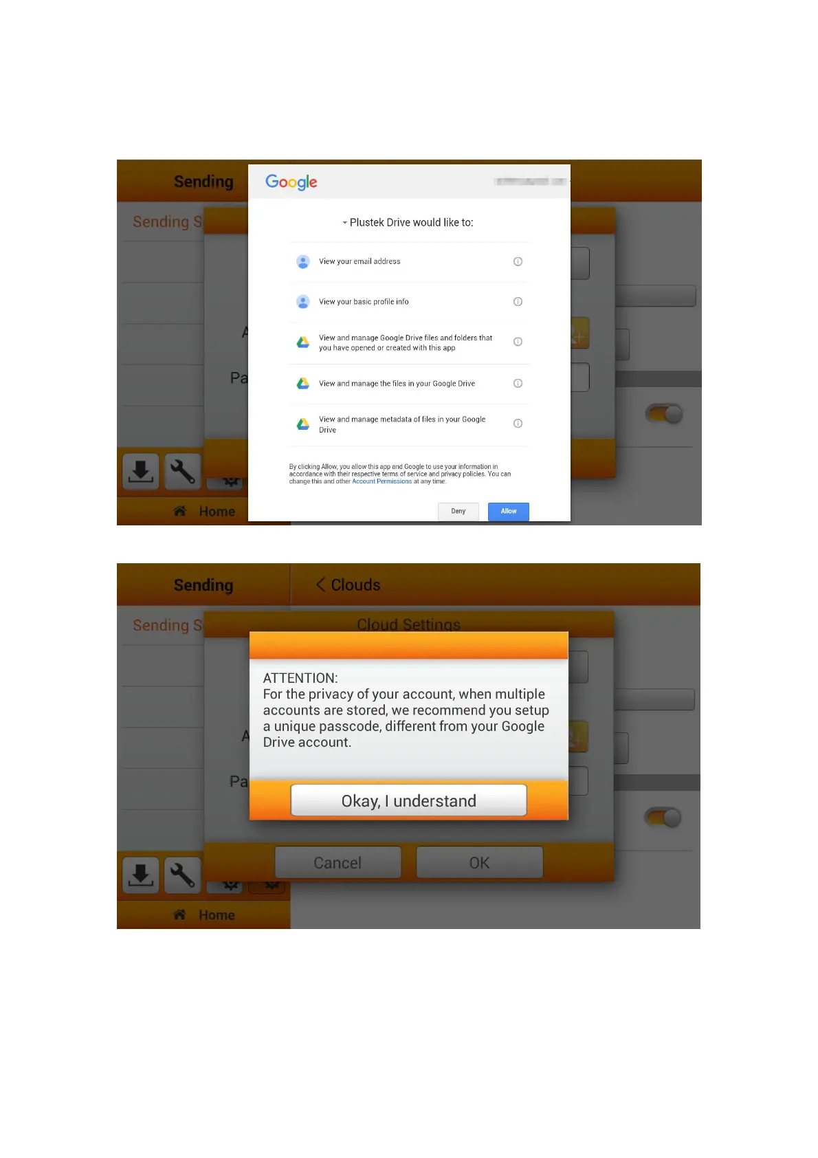 Tap on Allow button to allow the Plustek app to communicate with the Google