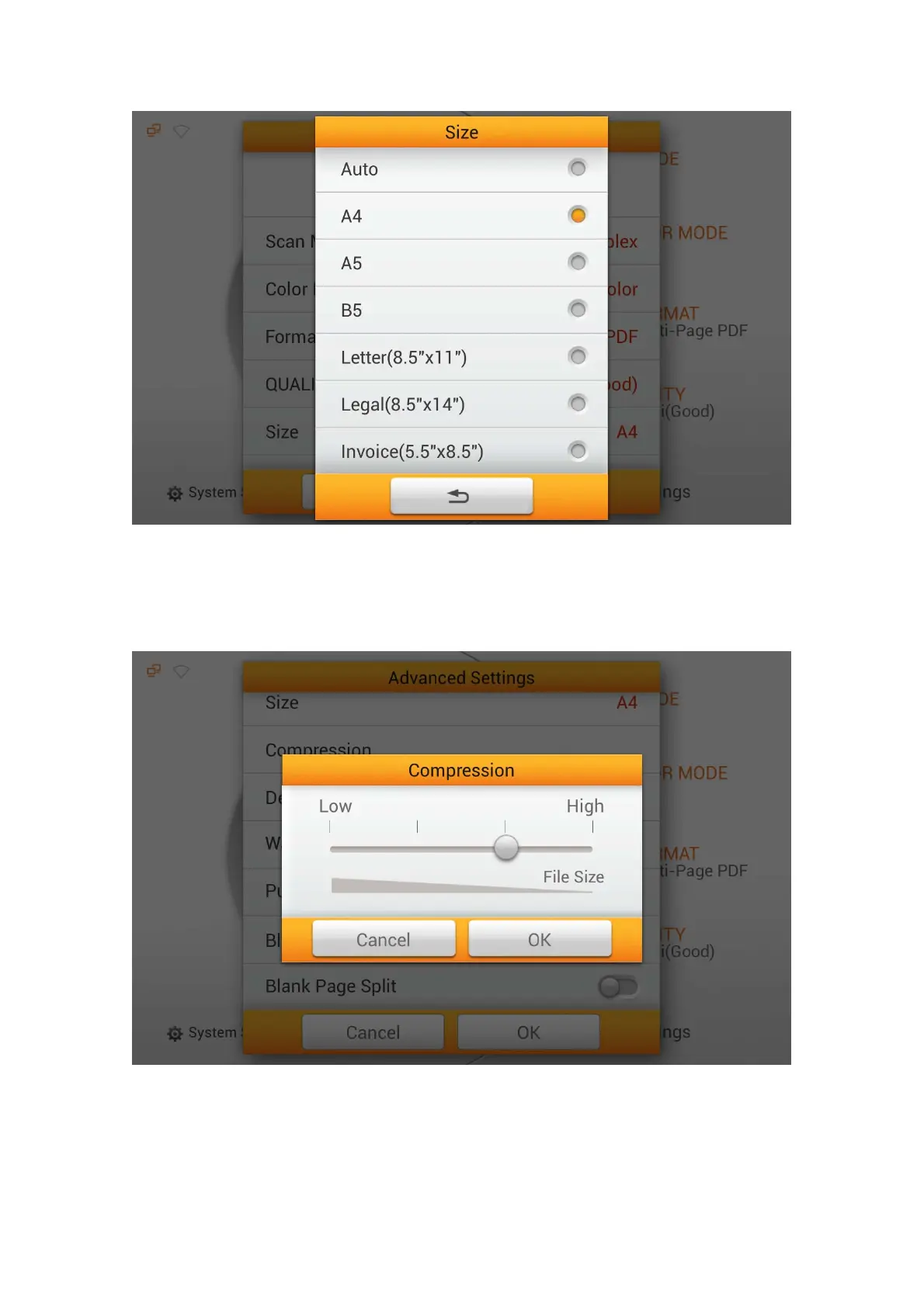 The lower the compression rate, the higher quality of the scan, resulting to a larger